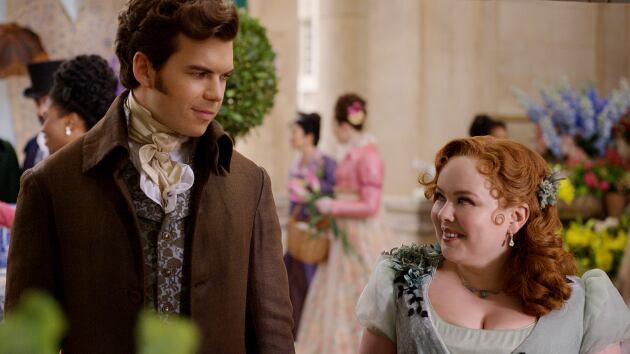 Over the weekend, new images of Coughlan as Penelope Featherington and Luke Newton as Colin Bridgerton in the upcoming season were shared at Netflix's Tudum Event in São Paulo, Brazil.