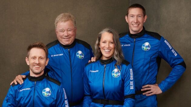 The Star Trek actor, famous for playing Starship Enterprise Captain James T. Kirk, blasted off into space at 10:50 a.m. Eastern time, along with microbiologist Glen de Vries, Planet Labs founder Chris Boshuizen and Blue Origin's Audrey Powers.