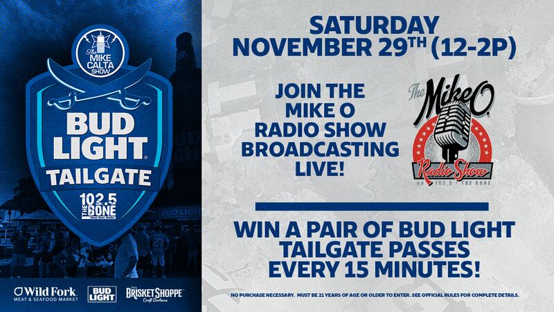 Join The Mike O Radio Show and 102.5 The Bone at The Brisket Shoppe, Saturday, November 29th from 12 til 2! They’ll broadcasting live and giving away a pair of Bud Light Tailgate passes for the next day! Come hang with Mike O at Brisket Shoppe, 3501 Armenia Ave in Tampa. Win passes to the Mike Calta Tailgate every 15 minutes!