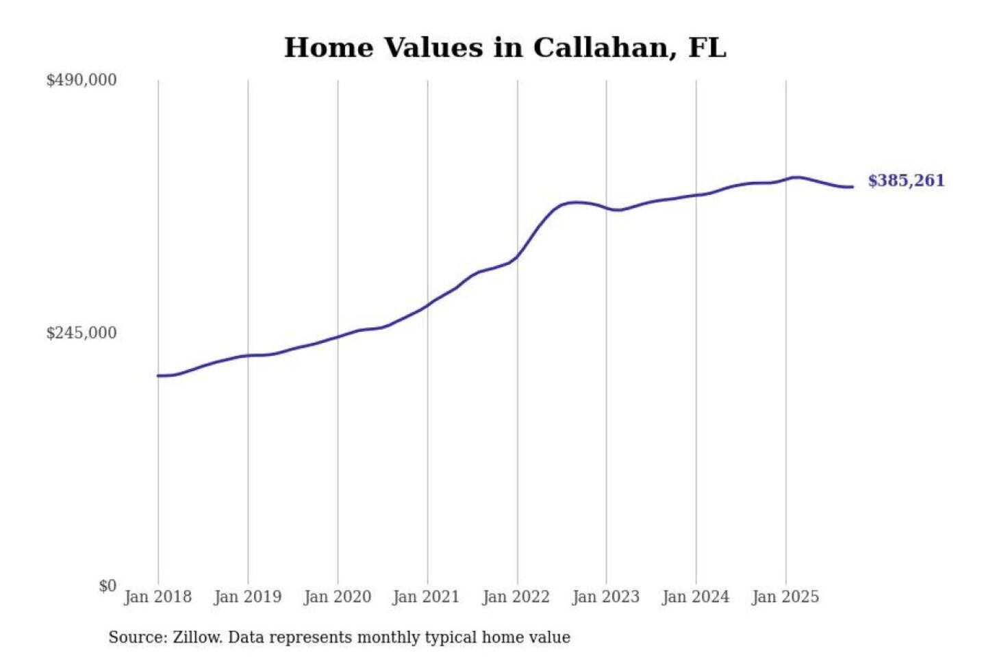 Stacker compiled a list of cities with the most expensive homes in the Jacksonville, FL metro area using data from Zillow. Charts show the monthly typical home value since January 2018.