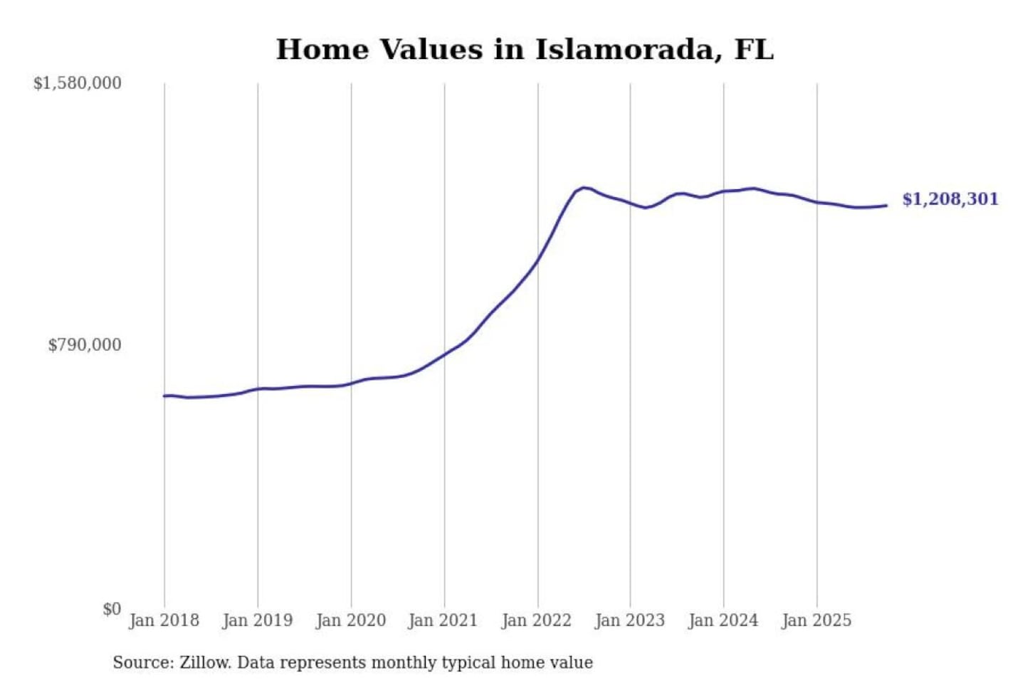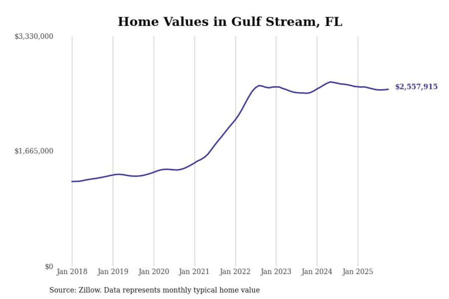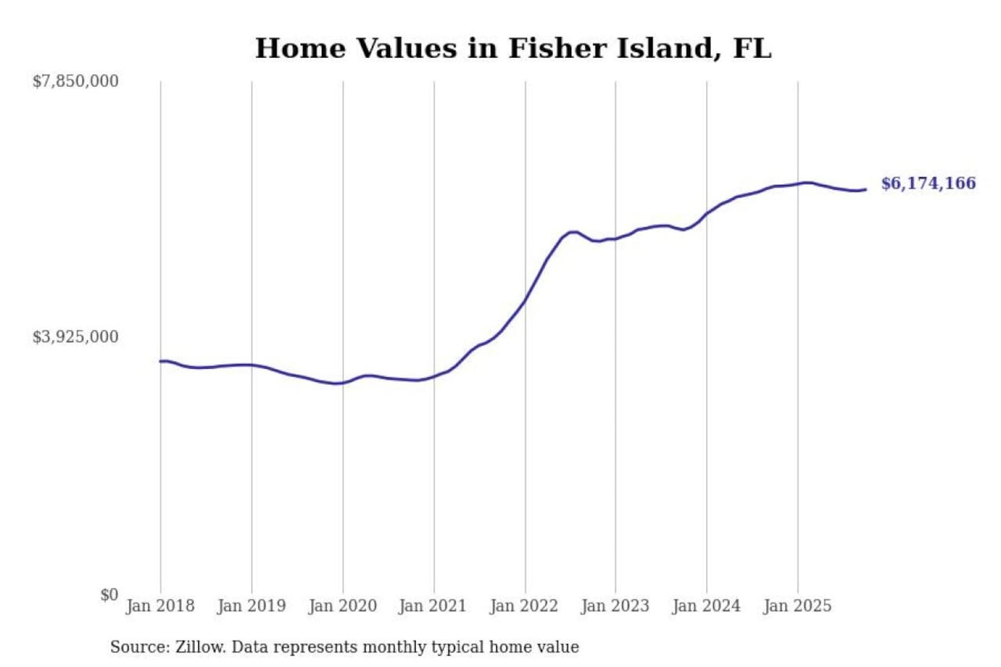 Stacker compiled a list of cities with the most expensive homes in Florida using data from Zillow. Cities are ranked by the Zillow Home Values Index for all homes as of October 2025. The charts in this story were created automatically using Matplotlib.