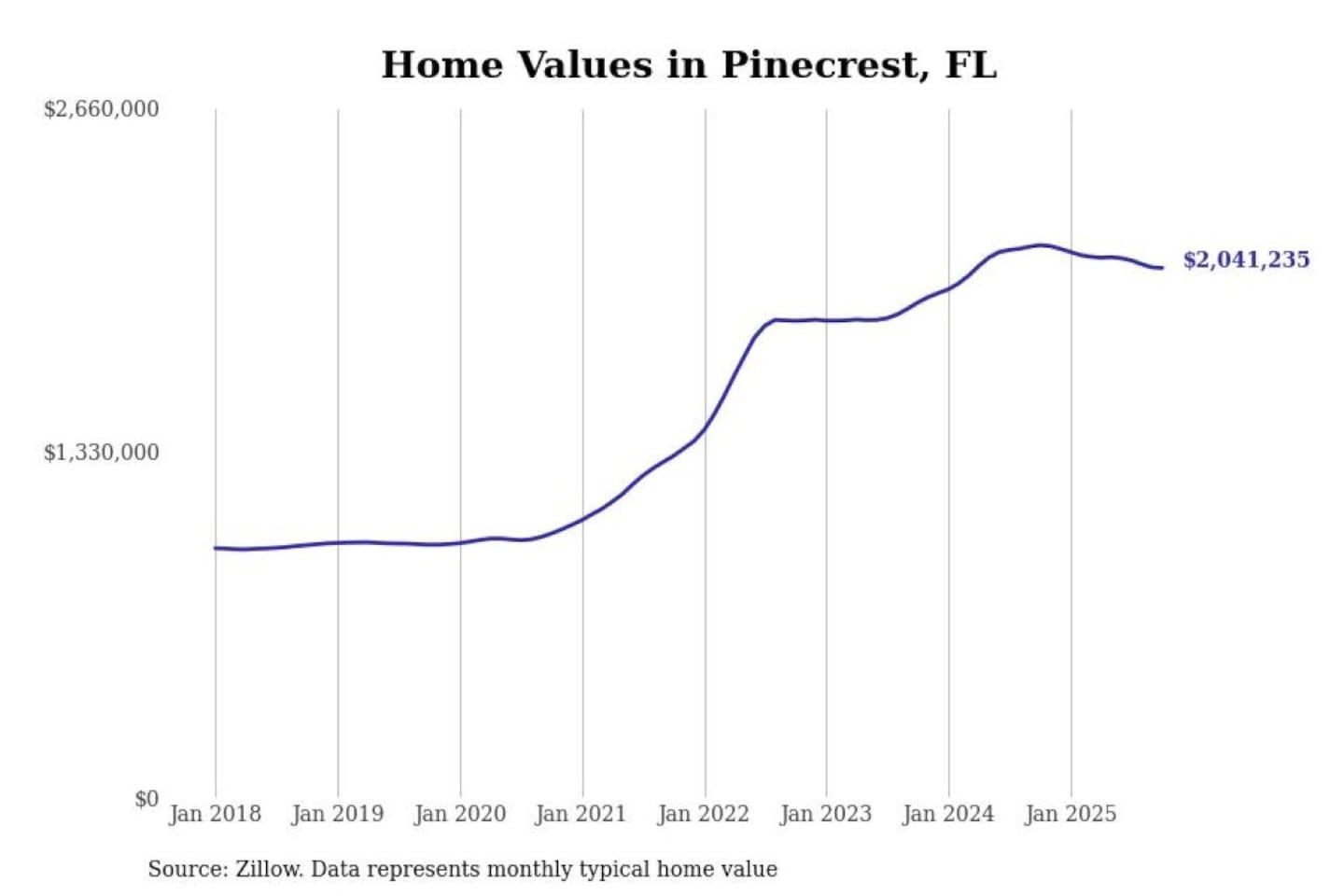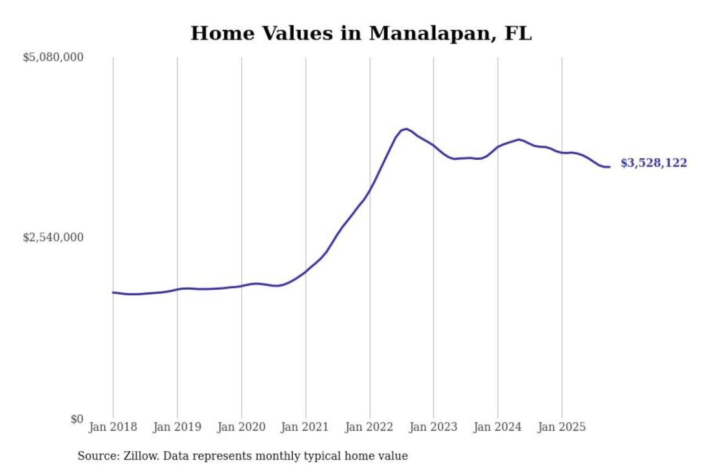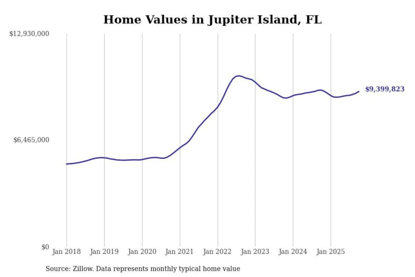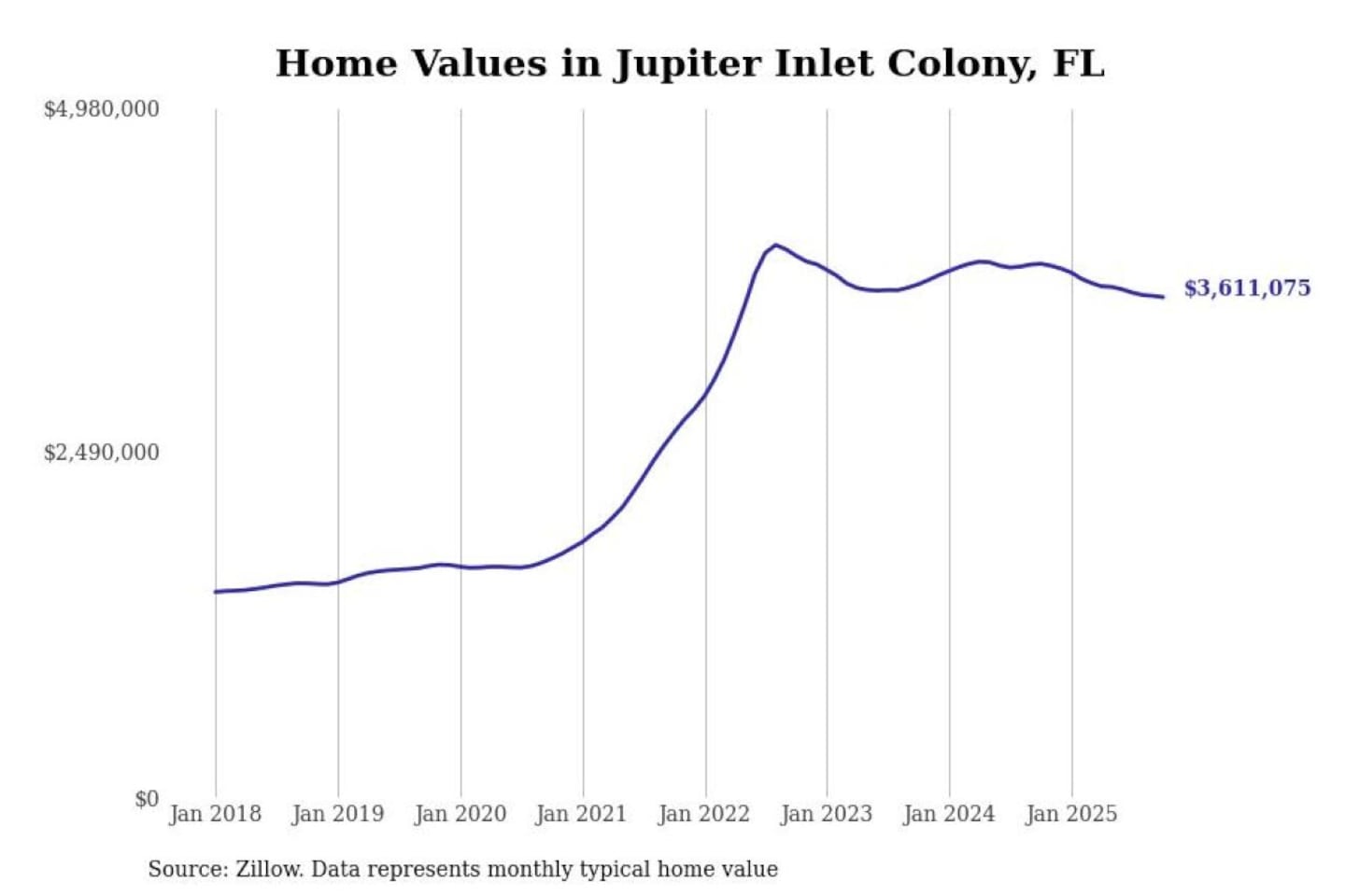 Stacker compiled a list of cities with the most expensive homes in Florida using data from Zillow. Cities are ranked by the Zillow Home Values Index for all homes as of October 2025. The charts in this story were created automatically using Matplotlib.
