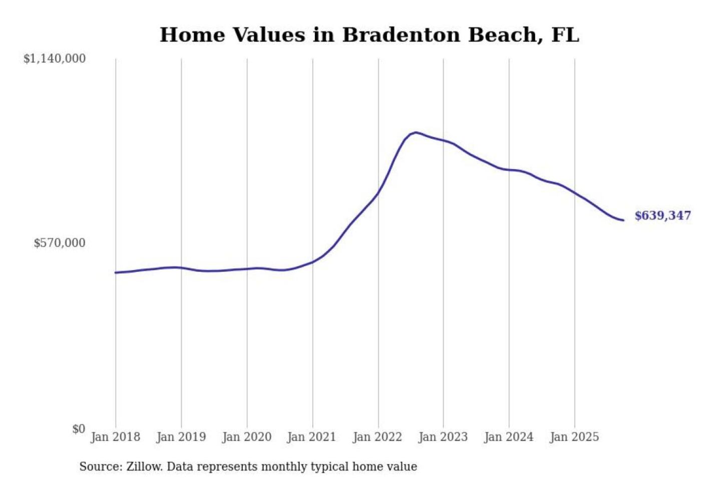 Stacker compiled a list of cities with the most expensive homes in the North Port metro area using data from Zillow. Charts show the monthly typical home value since January 2018. All 19 cities and towns with data available were included in the list.