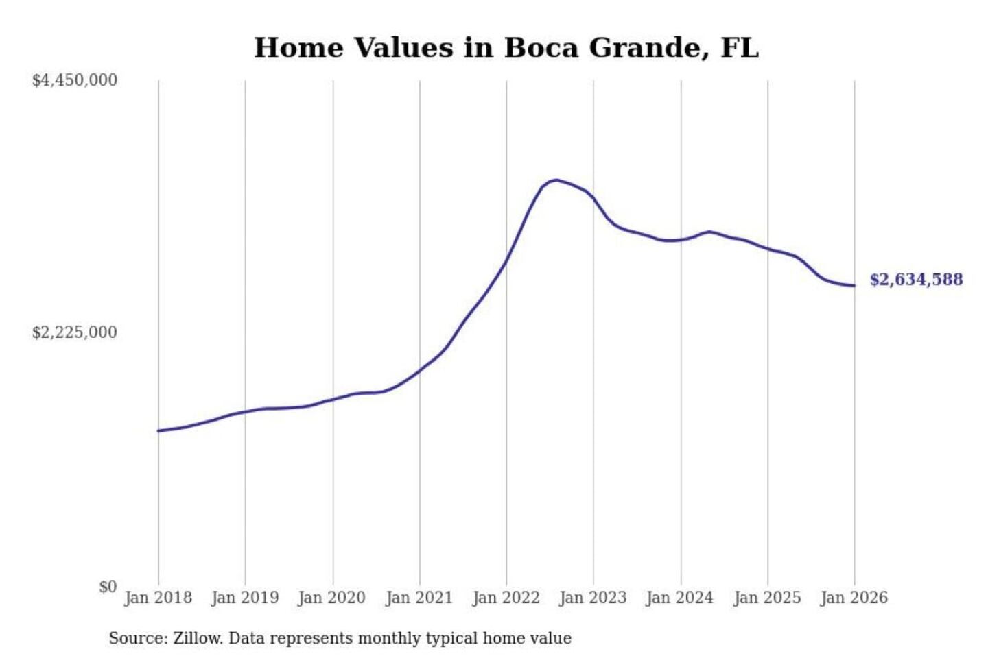 - Typical home value: $2,634,588