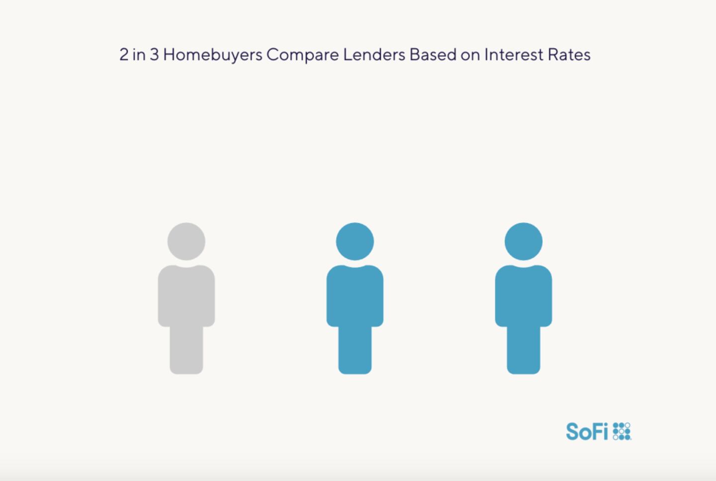 As homebuyers save money and search for a property, they’re also carefully weighing the second most critical decision in the home-buying process: selecting a lender for their mortgage loan. Roughly 1 in 4 homebuyers is paying all-cash for their purchase, an all-time high, according to the NAR. But among those who must borrow, SoFi’s survey found that interest rates were the top factor when comparing mortgage lenders. They were most important to 64% of respondents. Half of survey-takers said closing costs were a key factor, while 48% had their eye on closing costs when comparing lenders. Special programs and incentives were an important comparison point for 40%. Reputation and customer satisfaction were important to 39% of buyers.
