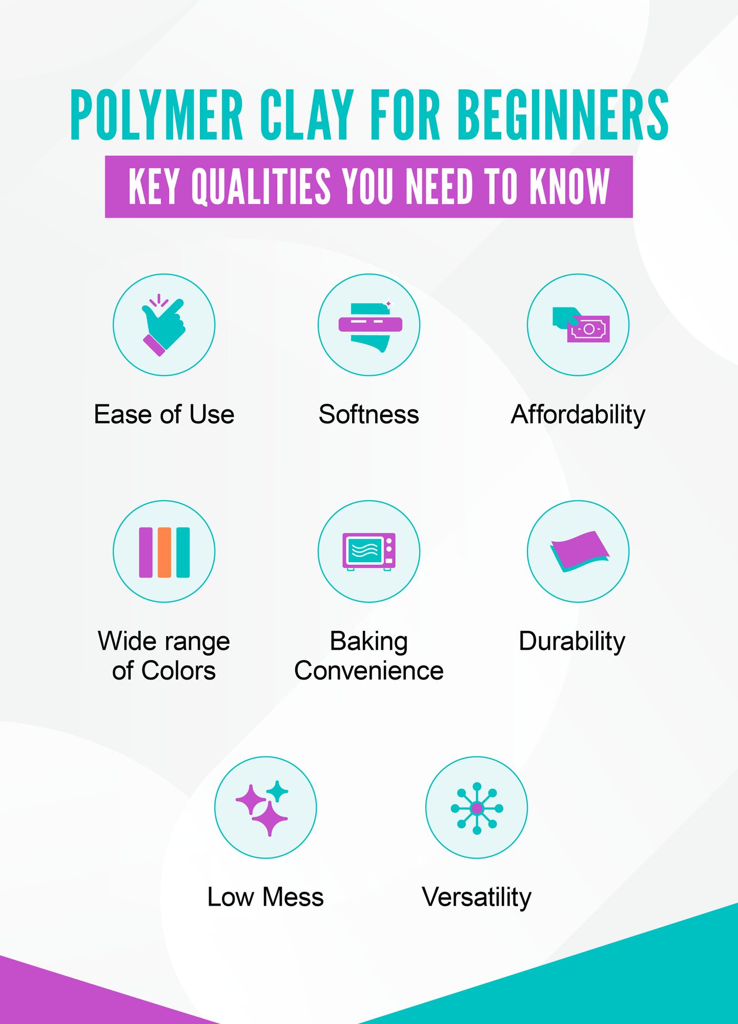 Your choice of polymer clay largely depends on your goals and experience level. You have a choice of colors, textures and consistencies, each suited to a different application. Regardless of your project or goals, there are several factors to consider when buying clay, including: