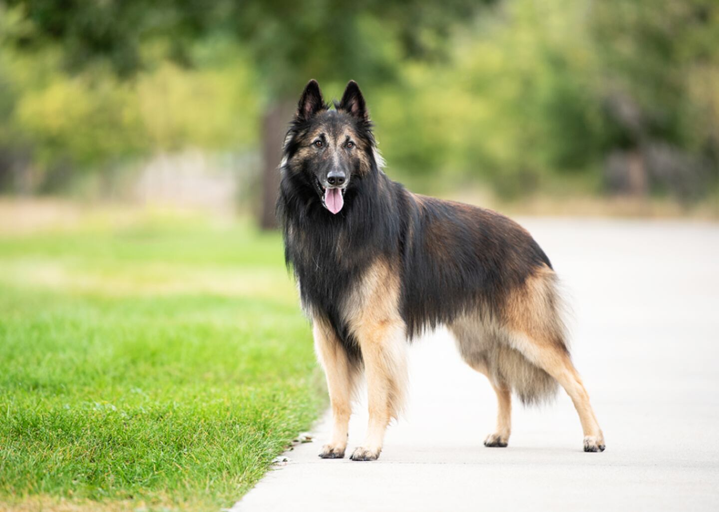 These herding and guarding dogs are characterized by their long, straight coats, which set them apart from other Belgian herders. Due to the Belgian Tervuren's hardworking and intelligent nature, the breed is happiest when challenged through play or with a new task to master. Belgian Tervurens also display a sense of mischief, with owners reporting that they're frequently outsmarted by their dogs.