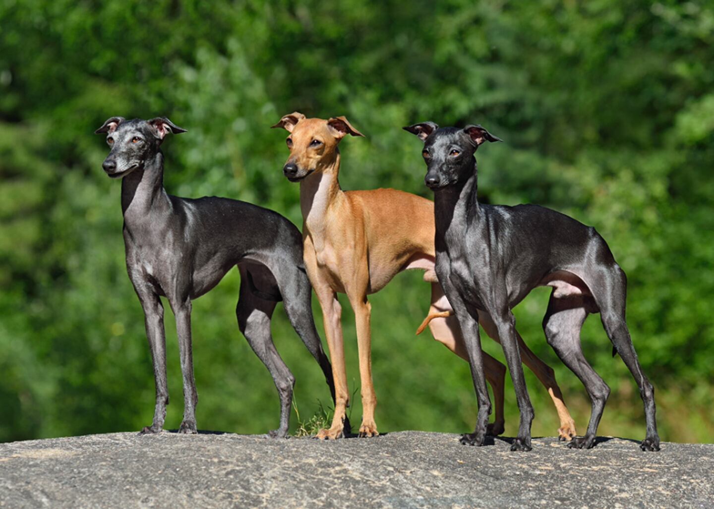 The slender, elegant Italian greyhound has served as a prized companion dog for the past 2,000 years, beloved by aristocrats like Catherine the Great and Queen Victoria. Though not quite as speedy as the standard greyhound, Italian greyhounds can reach up to 25 miles per hour. As a result, iggys are also formidable racing dogs.