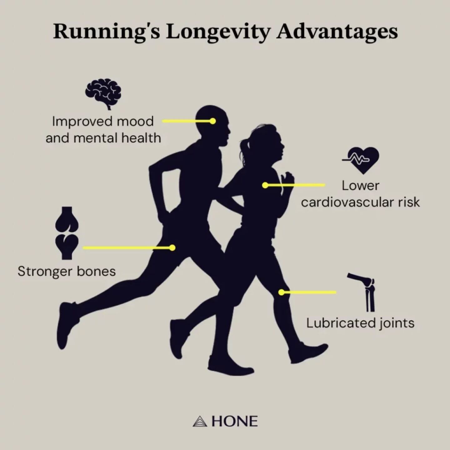 Depression and social isolation are associated with higher mortality risk, and running helps combat both. "By keeping your mood up and mental health in check, running helps break that link," Knight notes.