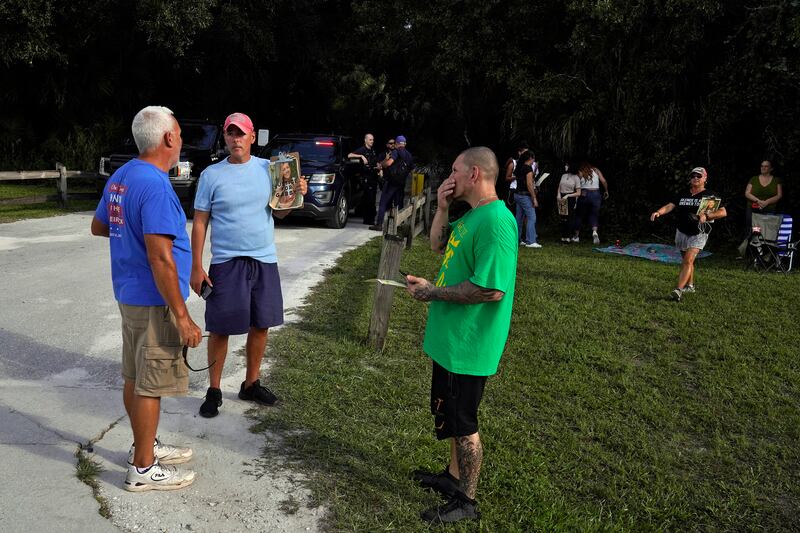 Photos: Brian Laundrie's backpack, notebook found in Florida nature reserve Supporters of Gabby Petito gather outside the Myakkahatchee Creek Environmental Park Wednesday, Oct. 20, 2021, in North Port, Fla. (AP Photo/Chris O'Meara)