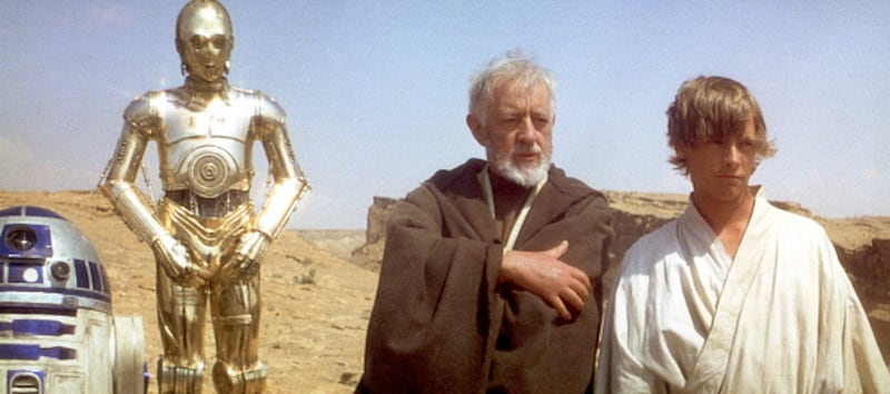 Returning to theaters Actors Mark Hamill, Carrie Fisher and Harrison Ford on the set of Star Wars: Episode IV - A New Hope written, directed and produced by Georges Lucas. (Photo by Sunset Boulevard/Corbis via Getty Images) (Sunset Boulevard/Corbis via Getty Images)