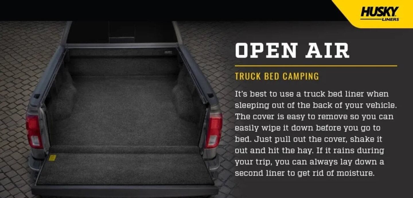 No tent? No problem. You can always sleep out of your truck or even in the bed of your pickup truck, but it's best to make a few modifications first. If you're looking to get out of the house and enjoy a fabulous vacation, this in-depth Husky Liners guide explains the ins and outs of truck bed camping.