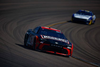 NASCAR Cup Series Straight Talk Wireless 500 AVONDALE, ARIZONA - MARCH 08: Tyler Reddick, driver of the #45 Jordan Brand Toyota, and Denny Hamlin, driver of the #11 Bob's Discount Furniture Toyota, race during the NASCAR Cup Series Straight Talk Wireless 500 at Phoenix Raceway on March 08, 2026 in Avondale, Arizona. (Photo by Meg Oliphant/Getty Images) (Meg Oliphant/Getty Images)